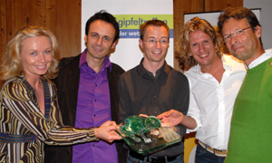 2008 ging der begehrte Award für die beste Wettermoderation an den ORF: Wetterchef Thomas Wostal (Mitte) nahm die Trophäe gemeinsam mit seinen ORF-Kollegen Isabella Krassnitzer, Christian Huhndorf und Erhard Berger entgegen.