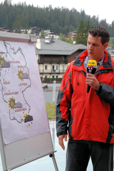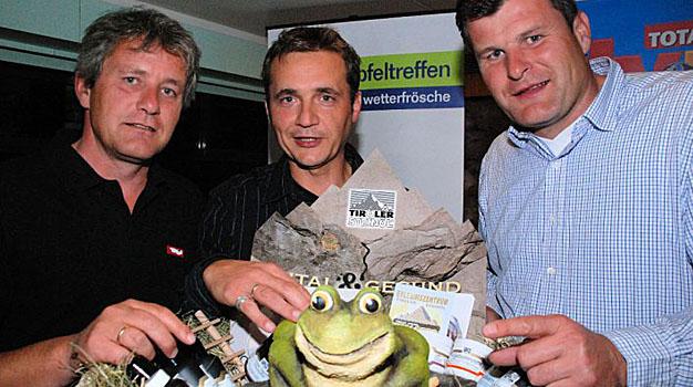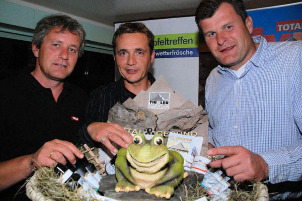 „Gipfeltreffen der Wetterfrösche“ beehrte 2009 die Regionen Achensee und Seefeld In nur zwei Jahren ist das in Tirol geborene "Gipfeltreffen der Wetterfrösche" zum absoluten Branchentreffpunkt für die Wetterredaktionen der großen deutschsprachigen TV-Stationen gereift. Nach der Region Wilder Kaiser und dem Ötztal fand die dritte Auflage des außergewöhnlichen Medienevents von 11. bis 13. September 2009 in den pittoresken Regionen Seefeld und Achensee statt. Mit einer Quote von mehr als 60 Mio. Menschen, denen im Zuge aktueller Wetterreportagen traumhafte Impressionen aus den beiden Tiroler Vorzeige-Destinationen in die Wohnzimmer geliefert wurden, erreichte das „Gipfeltreffen der Wetterfrösche“ einen neuen Zuseherrekord. Mehrere Regionen in und außerhalb Tirols hatten um die Gastgeberrolle für das „Gipfeltreffen der Wetterfrösche“ gebuhlt. Dass sich die Wetterfrösche und Wetterfeen letztlich für die Olympiaregion Seefeld und Tirols Sport & Vital Park Achensee entschieden haben, hatte nicht nur mit den hervorragenden Arbeitsbedingungen vor Ort zu tun, sondern maßgeblich mit den facettenreichen Impressionen und Geschichten, die diese beiden Regionen für TV-Stationen zu bieten haben. „Wir leben halt von starken Bildern!“, sagte beispielsweise RTL-Wetterchef Christian Häckl, „und die haben wir hier bekommen!“ Gastgeber Seefeld und Achensee 2009 freuten sich die Olympiaregion Seefeld und die Vitalregion Achensee darüber, Gastgeber für alle großen deutschen Fernsehstationen mit Wetterredaktion zu sein. Maßgeblich unterstützt wurde das Gipfeltreffen auch von der Tirol Werbung. „Die Wettermoderatoren haben inzwischen Tirol und die Gastfreundschaft in unserem Land kennen und schätzen gelernt“, erklärten Martin und Markus Tschoner, die Geschäftsführer der beiden bekannten Urlaubsdestinationen. „Und natürlich freuen wir uns schon darauf, die schönsten Fernsehbilder unserer Urlaubsdestinationen in den einzelnen Wetterberichten wiederzusehen“, fügten die Touristiker augenzwinkernd hinzu.